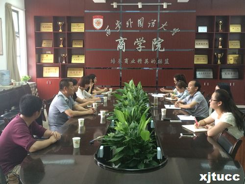 为增进沟通交流,互相学习,共同进步,西安交大城市学院管理系一行7人于2015年6月19日下午赴西安外国语大学商学院交流学习。管理系常务副主任冀祥、学生工作主管刘健、团工委书记朱艳丽以及辅导员陈相君、王佩和刘虎共同前往。西安外国语大学商学院党委书记周龙热情接待,并安排双方于商学院会议室进行交流座谈。