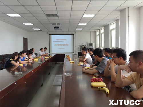 6月18日上午,西安交大城市学院计算机系在行政楼504会议室举行以“感恩母校,扬帆起航”为主题的2015届毕业生代表座谈会,系主任缪相林、副主任李联宁、主任助理杨宏霞、办公室主任李敬伟、2015届部分毕业生以及低年级学生干部代表参加了此次座谈会,座谈会由系学生工作主管牛彦龙主持。