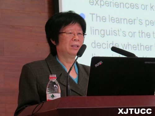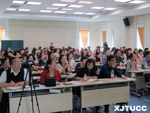 4月24日下午,西安交大城市学院外语系全体专职教师参加了由西安交大外国语学院举办的学术报告会。中国英语教学研究会会长、国际应用语言学学会执行委员、教育部人文社会科学重点研究基地中国外语教育研究中心前任主任、北京外国语大学博士生导师文秋芳教授在逸夫外文楼十楼学术报告厅作了题为“认知对比分析假设”学术报告。报告由交大外国语学院院长陈向京教授主持。