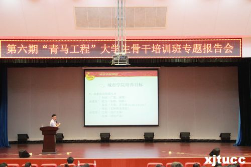 4月28日,yl7703永利官网团委在教二报告厅举行了第六期“青马工程”大学生骨干培训班专题报告会。出席此次活动的领导嘉宾有:学生服务中心主任张学堂、院团委书记曹嘉伟、院团委韩树。报告会由张学堂老师主讲,本次活动由团委组织部常钰婷同学主持。