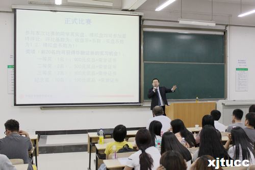 华融证券高级投资顾问刘超先生首先对华融证券股份有限公司进行了简单介绍,随后他对中国金融证券行业前景进行了详细分析并且介绍了一些中国股市的操作策略与相关研究,最后刘先生还具体介绍了本次金融投资大赛的具体内容,为学生更好的以实践促进理论学习搭建了平台,引起了在场学生的热烈反响,在互动环节中,他用其精湛专业的知识解答了同学们的疑问,赢得了大家的一致好评。