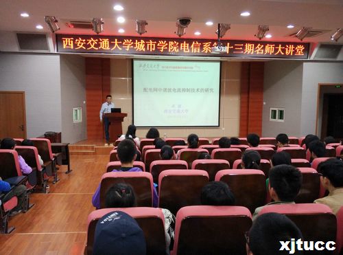 4月16日14点,yl7703永利官网电气与信息工程系第十三期“名师大讲堂”在F100报告厅如期举行,西安交通大学卓放教授应邀为同学们带来了一场题为《配电网中谐波电流抑制技术的研究》的专题报告,报告由电信系自动化专业郭华副教授主持,系团工委书记张天及2012级部分学生参加了报告会。