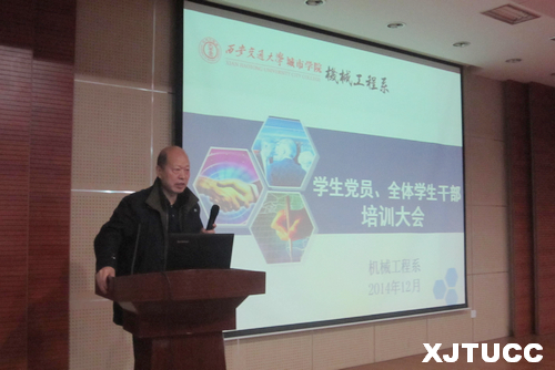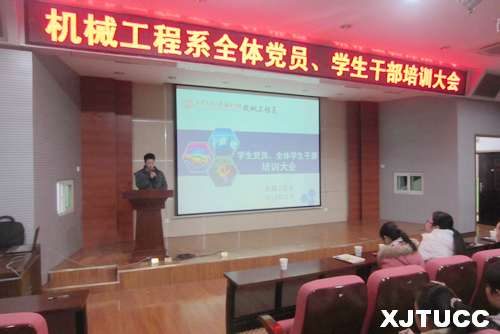 2014年12月11日中午,西安交大城市学院机械工程系在教学楼F100报告厅召开全体学生党员、学生干部培训大会。系副主任王志骞、学生工作主管霍伟森、辅导员鲁睿姣、王姣、段琳、鱼晓辉、王丽丽等老师出席了本次大会。本次培训大会由徐泳铎老师主持。