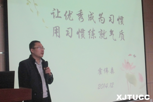 培训会上,霍伟森老师为全体学生党员、学生干部作了《让优秀成为习惯,用习惯练就气质》的培训讲座。霍老师从学习能力、工作能力以及个人素养三方面展开了内容精彩、意义深刻的讲座,并与在座的学生党员、学生干部分享了往届优秀学生的榜样事迹。