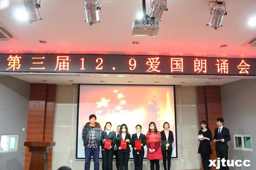 此次爱国朗诵会不仅增强了同学们的民族自尊心,自豪感和爱国主义情感,更是丰富了我校学生的课余生活。在评委老师,参赛选手以及工作人员上台拍照留念后,第三届12·9爱国朗诵会圆满结束。