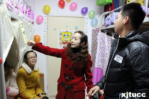 西安交大城市学院经济系第五届“宿舍文化节”之“宿舍装饰大赛”于11月24日正式开始,经济系副主任史冬梅、学生工作主管刘静、学工办全体辅导员以及学生干部代表共同对参与的60多间宿舍进行评审。