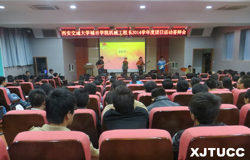 答辩会在富有激情的乐队表演中拉开帷幕。首先,由团学会组织部部长张宝起同学宣读评分要求极其细则。接着20个团支部分别通过PPT及精彩的文字解说进行了答辩。活动现场气氛活跃,选手与观众积极互动,嘹亮的口号和精美的海报让每个人都备受熏陶。霍伟森老师对本次团日活动进行了精彩点评并对各支部的活动进行了肯定,同时强调,开展团日活动要紧扣主题,把握时代脉搏,勇于创新,大胆实践。每一名团员要肩负起历史的使命和责任。最终,能动141、建环141、土木302等六个团支部获得了一二三等奖。