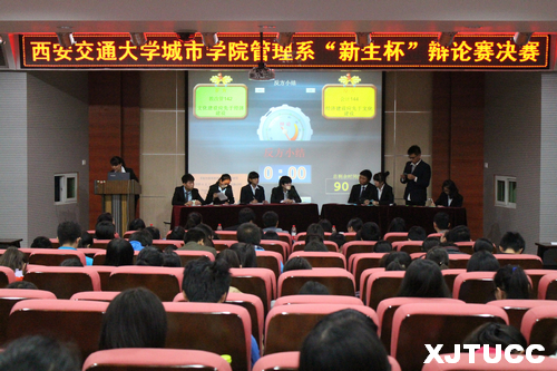 10月31日,西安交大城院管理系"新生杯"辩论赛在F100报告厅圆满落幕。参加本次辩论赛决赛的老师有:管理系团工委书记朱艳丽、学工办张曦元、韩珺、陈杜昊和刘虎老师。活动由会计142班李苑同学主持。