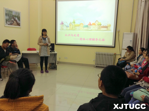 活动伊始,杨老师深入浅出地讲解了团体心理辅导的内涵与意义,特别指出对于大学生成长而言,团体心理辅导具有认识自己、理解他人、改善沟通等方面的作用。随后,杨老师以"成长路上相伴行"、"我的时间我做主"等团体心理辅导为例,介绍了相关的活动目的及其内容,引导同学们有一个更深层次的了解。在此基础上,杨老师引领同学们体验了相关的团体心理辅导活动形式。在松鼠与大树、棒打薄情郎的活动环节中,通过自我介绍与一定的肢体接触,同学们渐渐敞开了心扉,消除了陌生带来的拘束,积累了良好的团体氛围。在寻找你的快乐组合活动中,同学们积极思考,热烈讨论,每个团队创建与展示了独特的组名、口号与队标。最后,在生命线的体验环节中,同学们静静思索,写下了自己最难忘、最想做的三件事,学习了活在当下的生活态度。