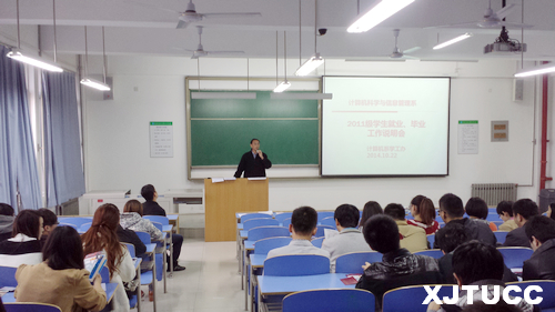 10月22日下午,西安交大城市学院计算机系在教二楼217教室组织召开2011级学生就业、毕业工作交流活动,系副主任李联宁教授,浙大MBA职业发展沙龙主持人、西安腾普科技有限责任公司高级咨询总监张昞先生应邀与系2011级全体学生一起参加了活动,活动由系学生工作主管牛彦龙主持。
