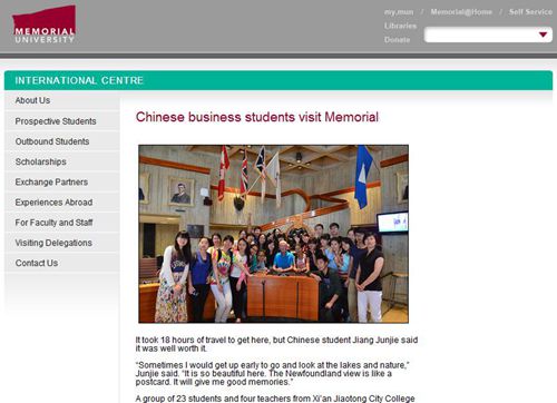 全英文报道链接:http://www.mun.ca/international/ExperiencesAbroad/chinesestudents.php