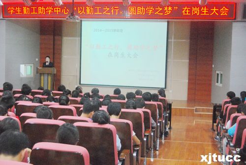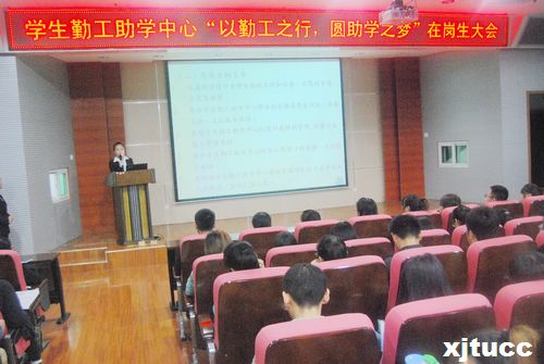 9月25日中午12:10,西安交大城市学院学生勤工助学中心在F100召开了以“以勤工之行,圆助学之梦”为主题的全体在岗生大会,学生服务中心李霞老师、学生勤工助学中心主席邓森、习芳同学以及中心全体干部和全体在岗生。会议由岗位管理部周倩主持。