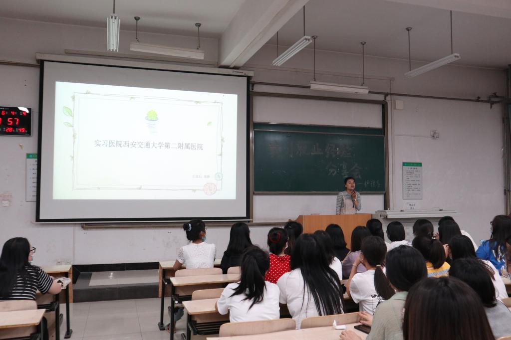 护理系2016级优秀实习生及优秀毕业生代表们分享了自己在实习中总结的经验、深刻的体会及难忘的经历。王琰同学(2020届优秀毕业生干部)为大家详细讲解了实习规划、实习流程、各科室常见疾病与常用操作等;尹莎同学(交大一附院优秀实习生)讲述了她在各个实习科室的所学所得所悟;何欣同学(陕西省人民医院优秀实习生)强调了在实习过程中一定要积极表现,勤学好问;崔静同学(交大二附院优秀实习生)分析了护理学专业的就业方向及面试技巧;马西西同学(西安市第三医院优秀实习生)鼓励同学们要善于发现问题,思考问题,解决问题,在实践中不断积累和成长。
