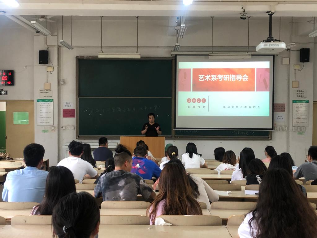 为调动我系学子考研的积极性,让大家更好提升学习效率,挖掘自身的潜能,6月6日下午,艺术系在D100教室举办“备战2021考研·经验指导会”,艺术系副主任张春新,学生工作主管李成,团学负责人杨梦圆及2017级和2018级有志于考研的同学悉数参加。
