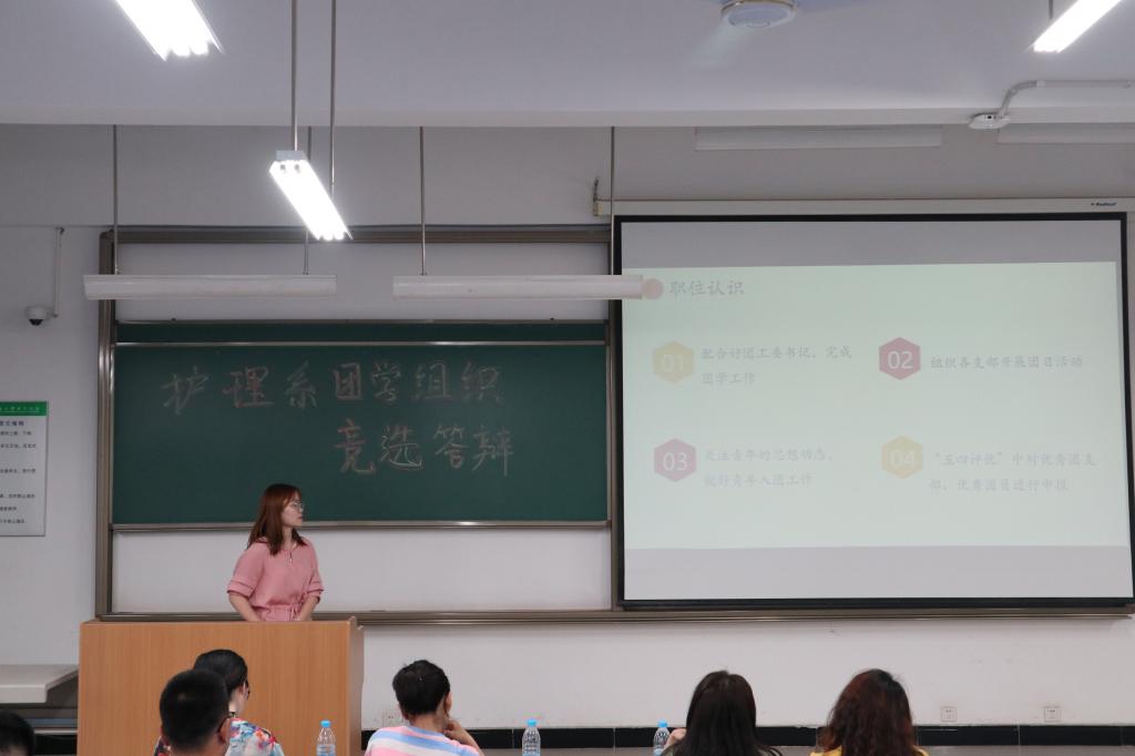 首先,主持人宣读了竞选规则,大会实行演讲制和现场提问制,每位候选人利用PPT进行五分钟的演讲。接着,主席团候选人和各部门候选人依次从个人情况简介、学习情况、岗位认知、工作规划等四个方面进行PPT答辩。然后,上一届学生会主席马广朝讲述了自己这一年来的感想和收获,希望新的一届团学组织能够不忘初心,服务师生,实现理想。大会最后,叶老师对上一届学生会干部为我系学生工作所做出的努力表示感谢,同时也对竞聘新一届学生会干部的工作提出要求,要继承发扬此次竞聘时彰显出的好风气,对自己所竞选的岗位要有清晰的认识并准确定位。