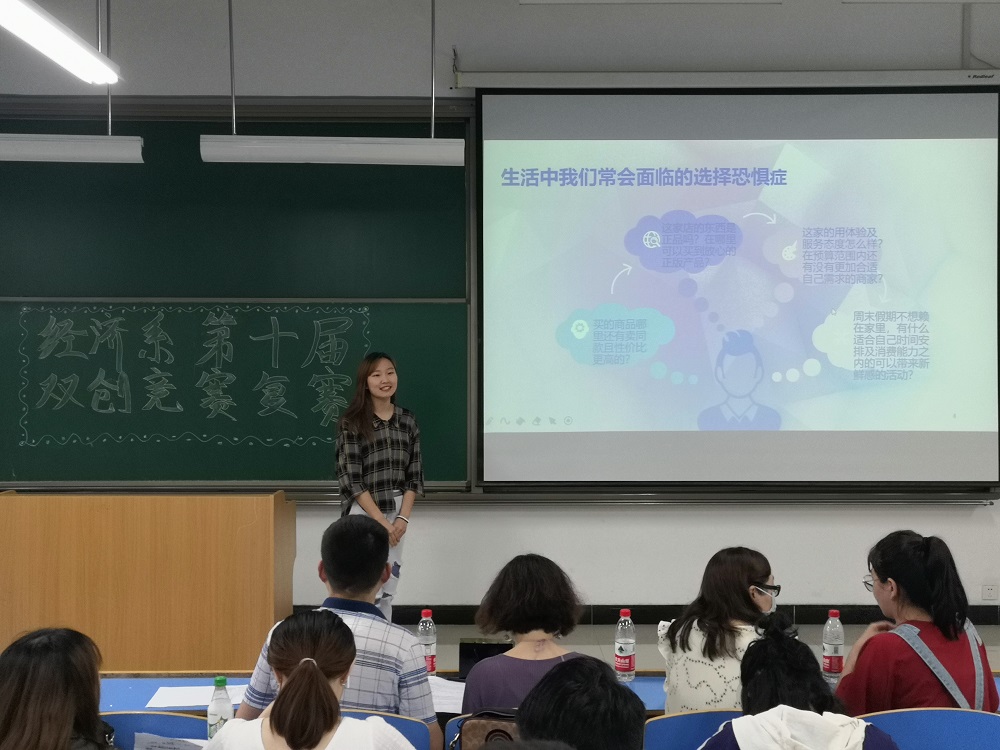为推进校园文化建设,展示大学生青春活力的风貌,进一步激发我校学生创新创业热情,提升大学生创新创业能力,展示我院大学生创新创业成果。6月15日,yl7703永利官网经济系于教二220举办创新创业大赛复赛。莅临本次活动的嘉宾有经济系主任杨建全、经济系财政专业负责人张娜、团工委书记蒋美一帆和创新创业负责人王世杰。本次活动由李嘉伟主持。