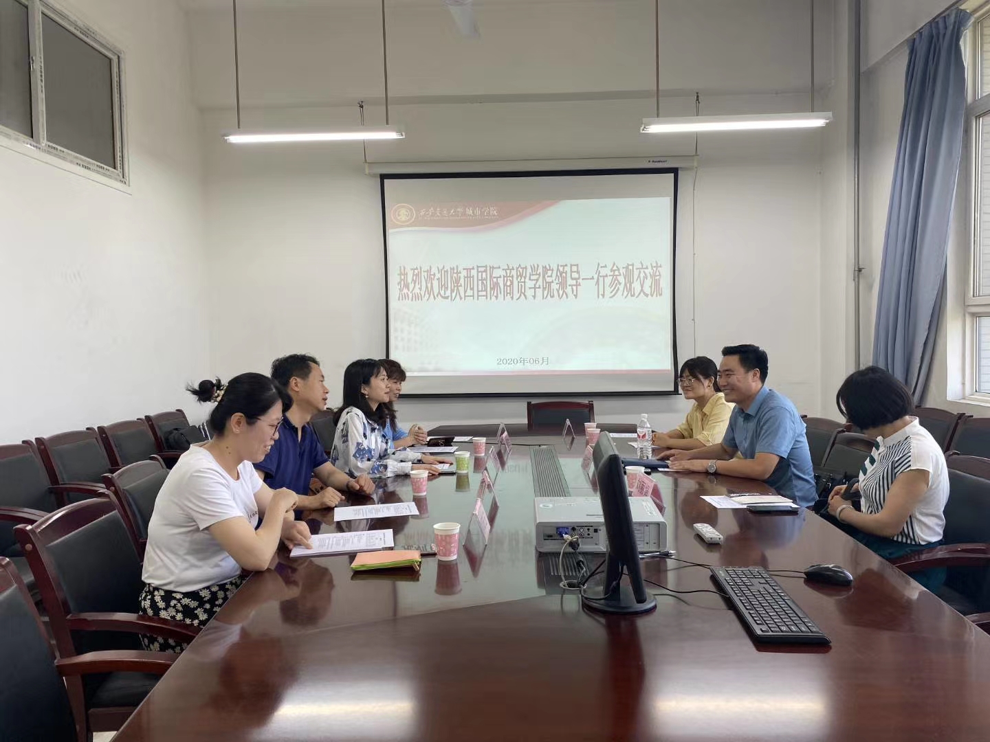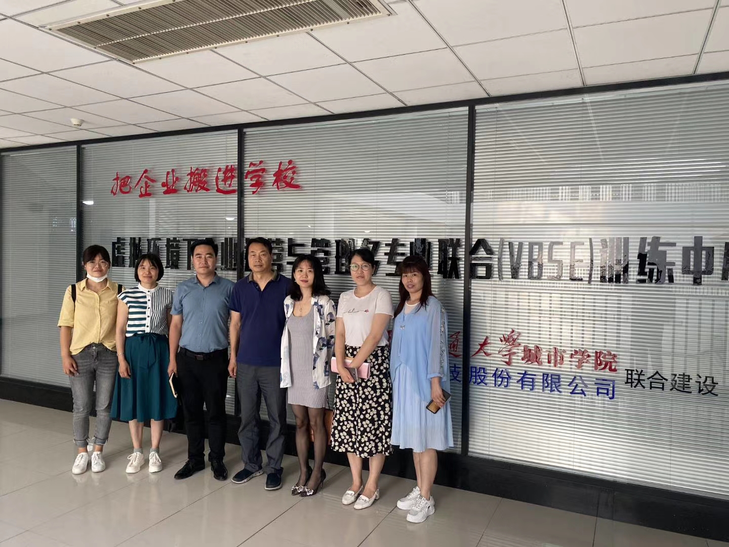 6月24日上午,陕西国际商贸学院商学院徐向宇书记一行来我院管理系关于校企云财务共建进行参观交流。管理系副主任郭关科、主任助理解茹玉、实验室副主任杜欣、新道科技股份有限公司陕西省区副总经理吴海鱼、驻校导师张庆兰在225会议室接待来宾。