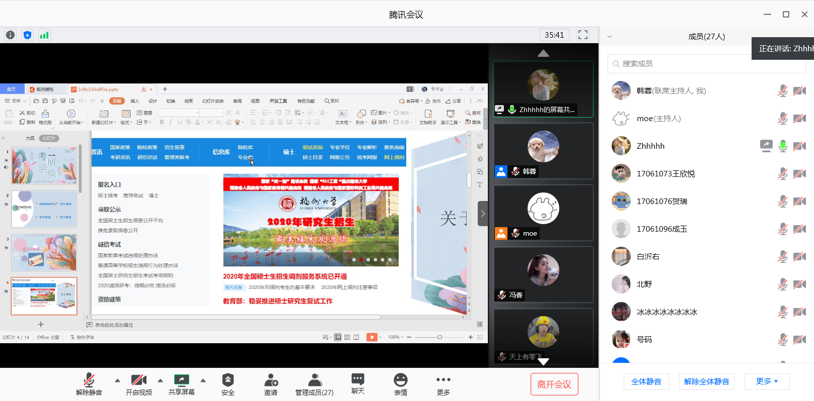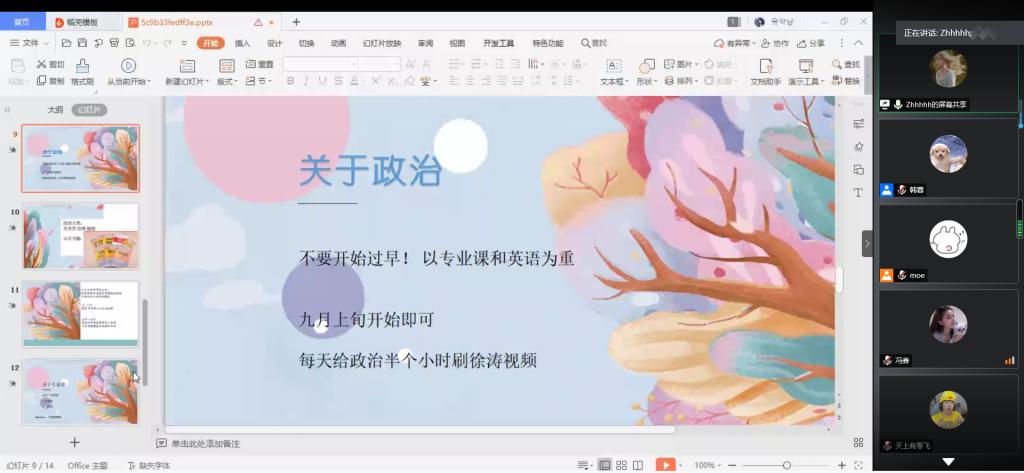 为加深2017级学生对考研的认识,帮助学生解决在考研中遇到的各种困难、问题,少走弯路,端正态度,为考研打好坚实基础,6月28日晚外语系举办了2017级考研经验交流线上分享会。参会人员有外语系辅导员韩蓉、2016级四名不同专业考取研究生的学生代表、以及2017级有意愿考研学生。