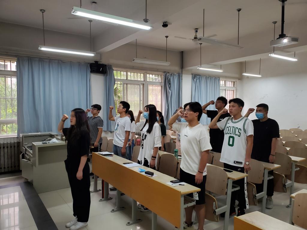 党支部组织委员周学斌同学带领全体党员,面向党旗庄严宣誓,重温入党誓词,铿锵恢宏的宣誓表达了大学生党员坚定的理想信念和努力奋斗的决心。随后,支部书记牛彦龙老师介绍了此次活动的重要意义,组织同学们观看国家记忆系列纪录片《中国有了共产党》,回顾学习党的历史,铭记党的奋斗历程,领略中国共产党自成立以来在革命、建设、发展中谱写出的新篇章。最后大家向支部汇报了近期的思想与学习情况,交流了本次活动的体会。