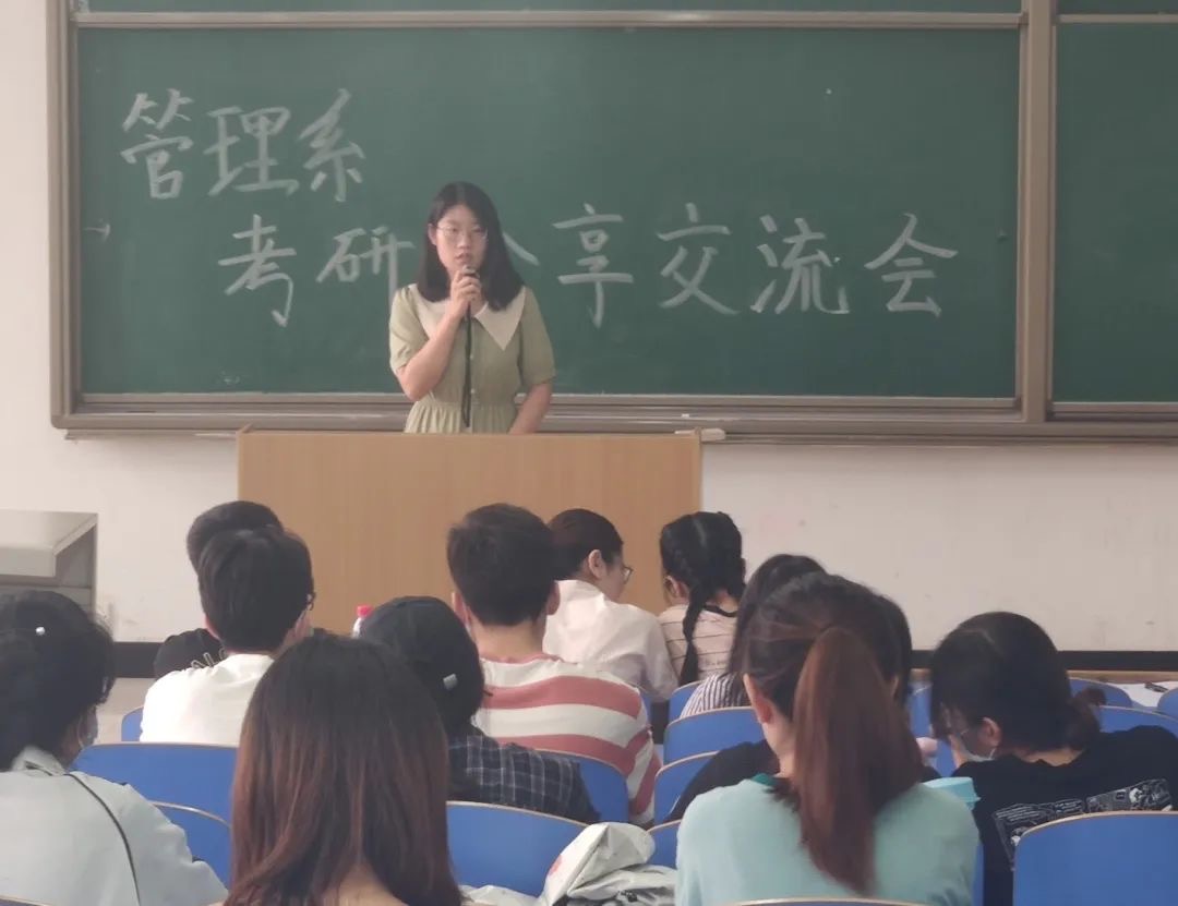 首先,管理系团工委于6月10日中午12:10在教二107召开了“考研分享”交流会。会议开始,首先由陈文杰学姐分别从择校和英语学习方法等方面分享考研经验。接着王笑学姐为即将参加统考的同学提供了考研经验,侧重于分析自己的做题思路和方法,她提出在打题海战的同时也不能忽视真题的重要性,并在最后说明了指出心态对于考研的重要性。最后马潇学姐以自己的亲身经历鼓励大家用一种积极乐观的方法备考,她主要提出学习要劳逸结合,排除外界干扰,坚定内心目标,选择适合自己的方法去学习。经验分享完毕后展开了一系列互动提问,提问者主要从如何择校,专业取向以及个别考研科目的学习方法等方面进行提问,三位学姐认真解答并从各个方面鼓励了在场即将考研的学生。最后由李辉老师对此次交流会做出总结,告诉大家在考研的路上必要脚踏实地,踏遍荆棘,坚持到最后,终会看到不一样的景色。