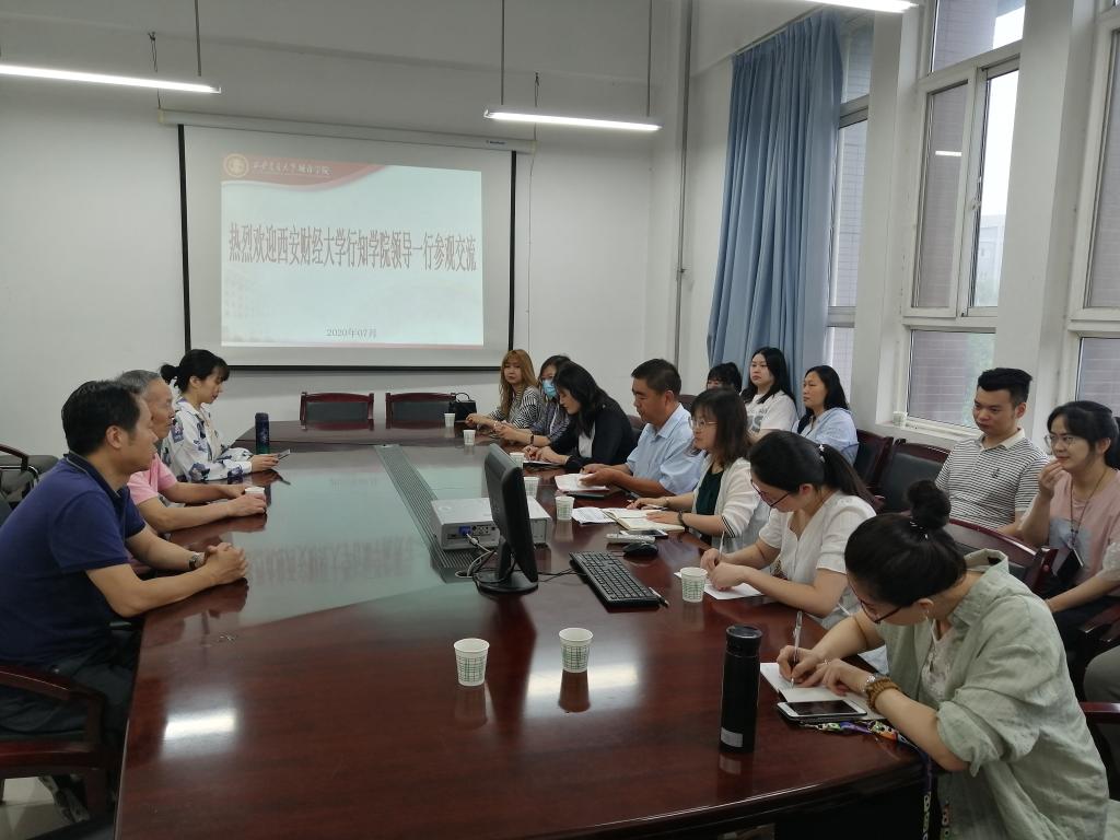 7月14日上午,西安财经大学行知学院会计学院院长李社宁、副院长韩磊、何雷及会计专业教师和辅导员等一行14人来我院管理系访问交流,管理系副主任郭关科、会计学专业首席教授王海民、新道科技股份有限公司吴海鱼、张庆兰对李院长一行人表示热烈欢迎,并在教2-225会议室召开交流座谈会。