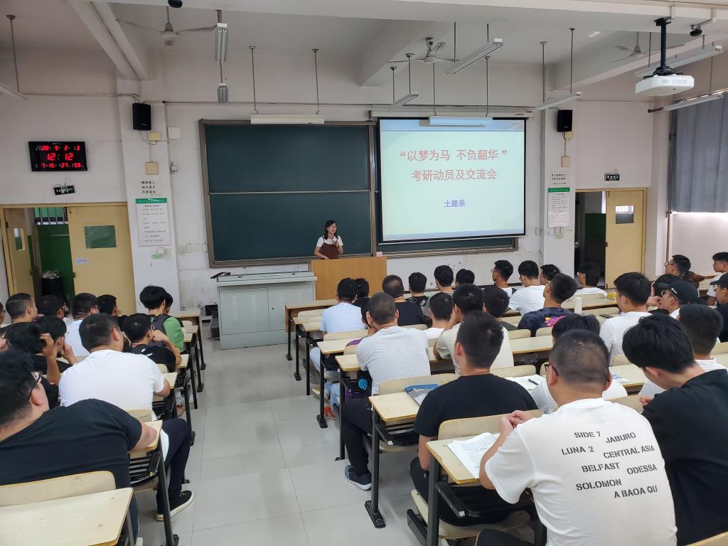 9月2日中午,土建系在C100教室组织举行全系学生考研动员大会,并部署下半年学生在考研方面的具体工作,系主任助理康彦青,学生主管牛彦龙,专业教师郭秀芹与系17级本科、19级专升本确定参加2020考研的毕业生以及2018级全体学生参加。