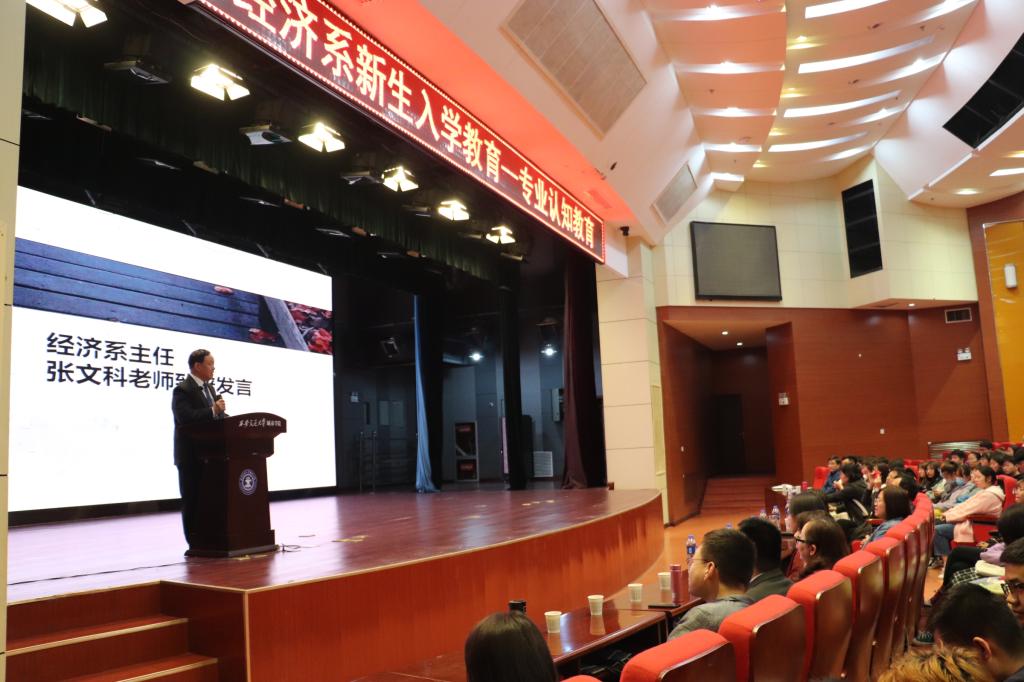 大会伊始,经济系主任张文科对新生的到来表示热烈欢迎,并简单介绍了我系的情况,他表示,希望在四年后的毕业典礼上,每一位同学都能够圆满的完成学业,做到勤于思考,敢于实践,拥有一个健全的体魄和精彩的未来。