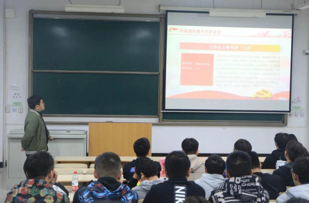 崔老师向同学们讲解了中国共青团的光辉历史、共青团的组织原则、团员的权利和义务、历史上的重要事件和重要会议等相关团学知识,并勉励每一名青年都应该将“争做优秀的共青团员”作为自己的奋斗目标,不断成长,最终能够成为担当民族复兴大任的时代新人。另外,他还介绍了“党的理论知识竞赛”、“手工艺品及机械创新设计大赛”、“五四评优”等团学主要活动的基本情况。