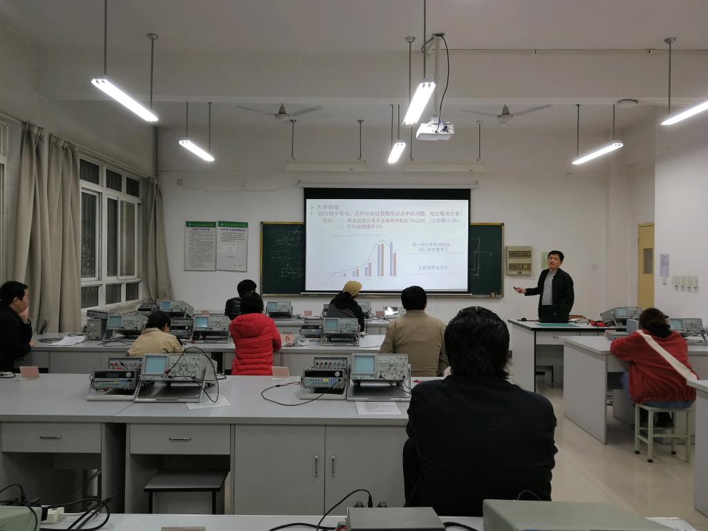 会议首先对前半学期的教学工作进行了总结。实验室主任王小克老师从教学秩序、问题启发式教学和开放实验进度三方面进行了总结。首先,各位教师采取了不同的互动形式,关注学生预习实验状况,结合实验内容加深学生的印象与理解。其次,开放实验前期进行良好,本学期要加强管理与记录,继续对学生提出论文书写要求,课程汇报效果要得到提高。再次,注意实验室安全管理,加强开放实验安全教育。大学物理教研室负责人竹有章老师主要从教学秩序、教学方法、教材编写3方面总结了目前大物教改进展及问题。强调本学期的重点是过程教学,增加辅导课后,学生积极性明显提高,教学秩序良好。