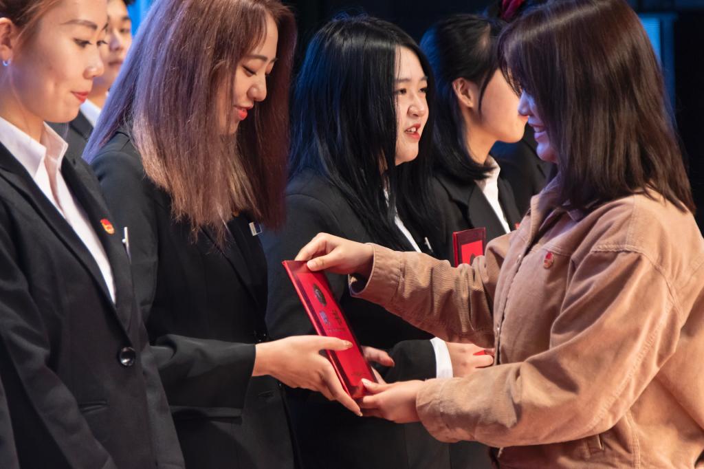 在同学们热烈的掌声中,团工委书记陈欣老师宣读了新一届团学会干部的任命名单并颁发了证书。接下来,新生干部代表赵雪瑶同学进行发言,她向大家表达了自己加入团学会后的感想,同时呼吁大一全体学生干部能够不忘初心,保持这份热情。随后,团工委副书记周昊、团学会主席张渲钰对上一学年的团学工作分别进行了总结汇报。