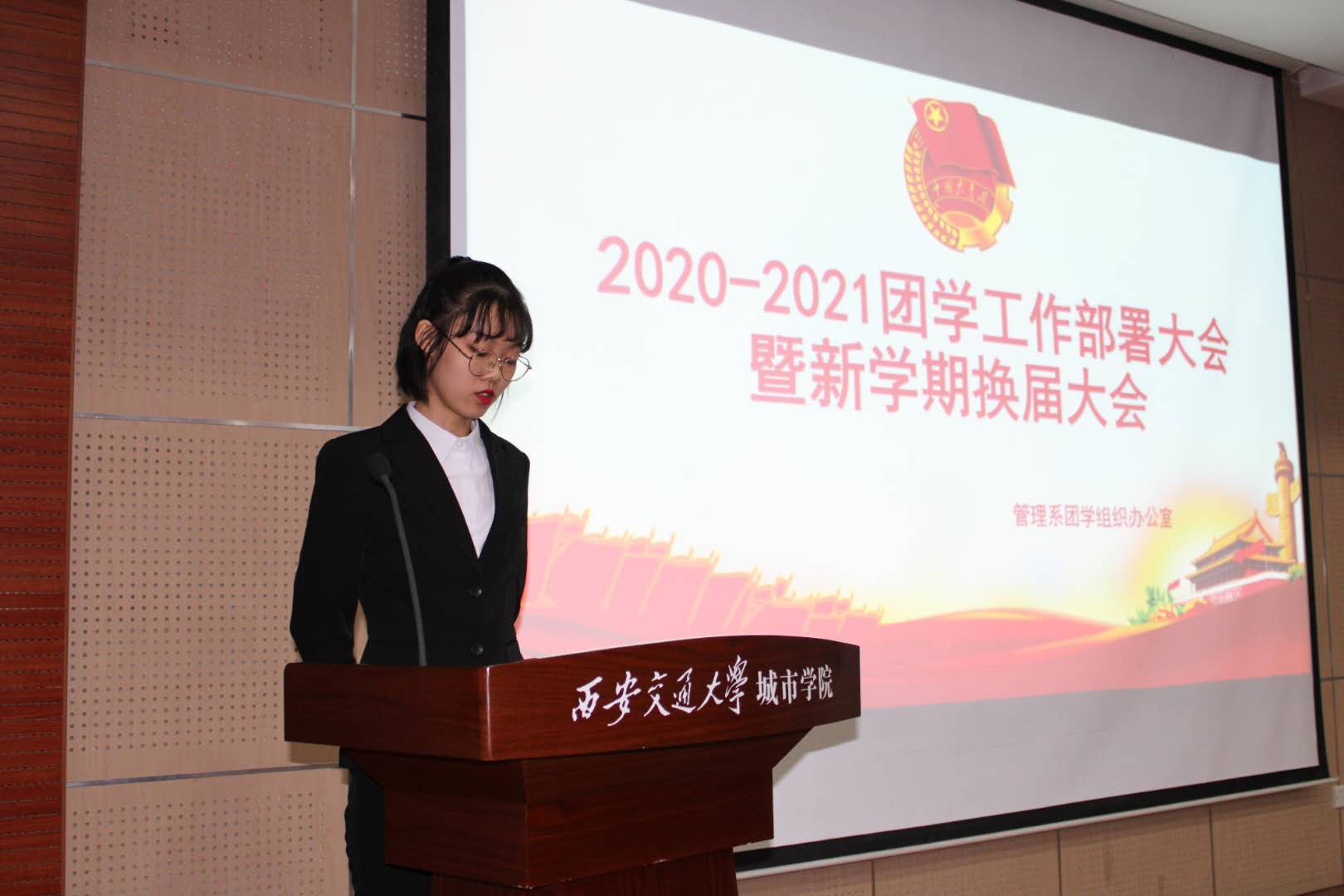 为了更好地推进团学工作的发展,yl7703永利官网管理系于11月3日中午12点在F100准时召开2020届团学干部换届暨新学期团学工作部署大会。出席本次会议的老师有管理系学生工作主管刘健,团工委负责人黎杨,学工办李辉、乔瑜薇。本次大会由系团工委办公室鲁怡婷同学主持。