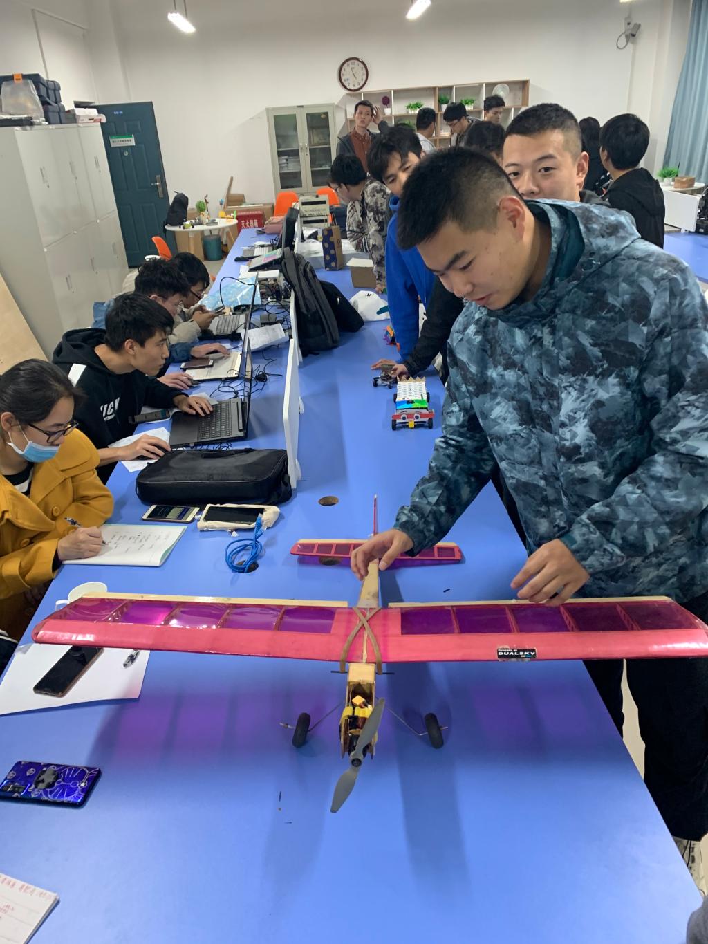为深入教学改革,打破传统的说教式刻板教育方法。培养学生对专业课的兴趣,通过教学方法和手段的改革,将社会责任、吃苦耐劳、艰苦创业的精神由点到面,持续渗透,做到既教书又育人的教育目标。电气与信息工程系电气专业将《电力电子技术》《智能电网》《自动控制理论》等多门专业课的课堂学习延续到课后的DIY(自己做)动手实践;将专业课学习的小课堂与社会大课堂相结合。由点到面,持续渗透,做到既教书又育人的目的。本次活动学生热情极大,累计收集了50余件学生DIY作品,有无人机、扫地机器人、太阳能小车、寻迹自动避障车、智能垃圾桶等。