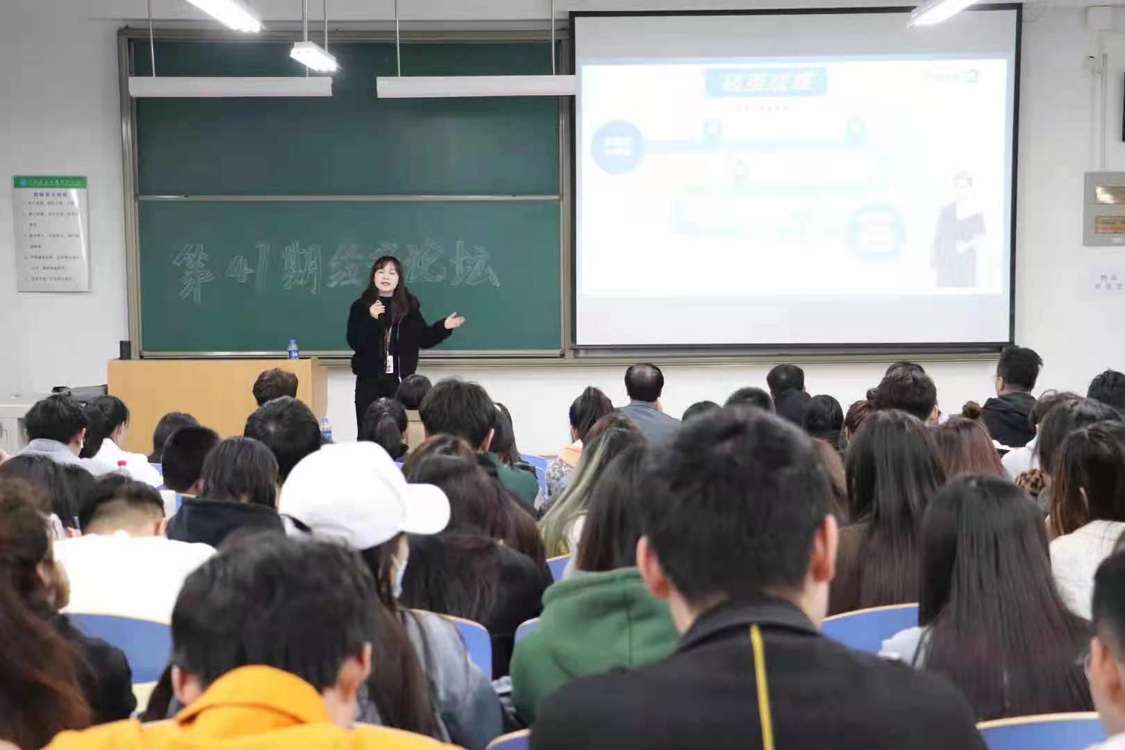 莅临本次论坛的嘉宾有:阿里巴巴陕西分部跨境电商服务中心国际贸易部负责人杨红、阿里巴巴陕西分部跨境电商服务中心人力资源总监尼聪聪、经济系副主任杨健全、培训中心韩利娜,经济系学工办廉宇婷等。本次会议由经济系团工委书记蒋美一帆主持。我院经济系为推进经济系国际经济与贸易一流专业建设,集合专业特点,将本次宣讲融入经济系第47次经济论坛。