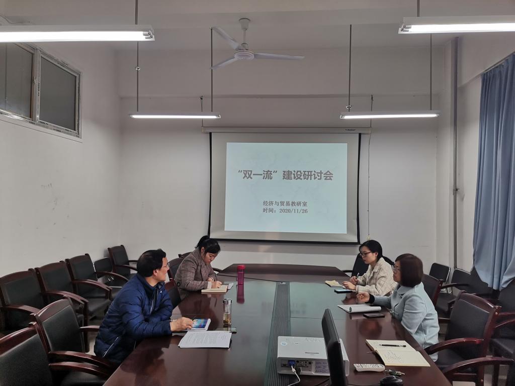 11月26日下午,经济系经济与贸易教研室举行“双一流”建设研讨会。经济系副主任杨健全、教学中心副主任张美丽、经济系主任助理白丹等教师参与了此次会议。