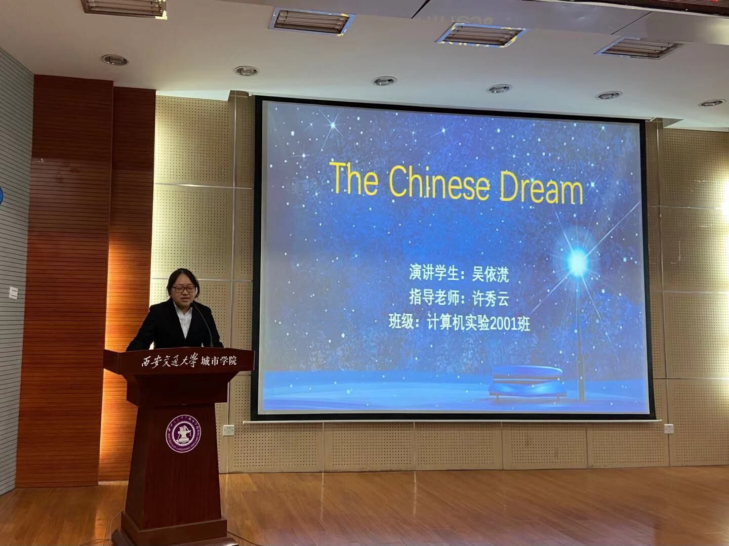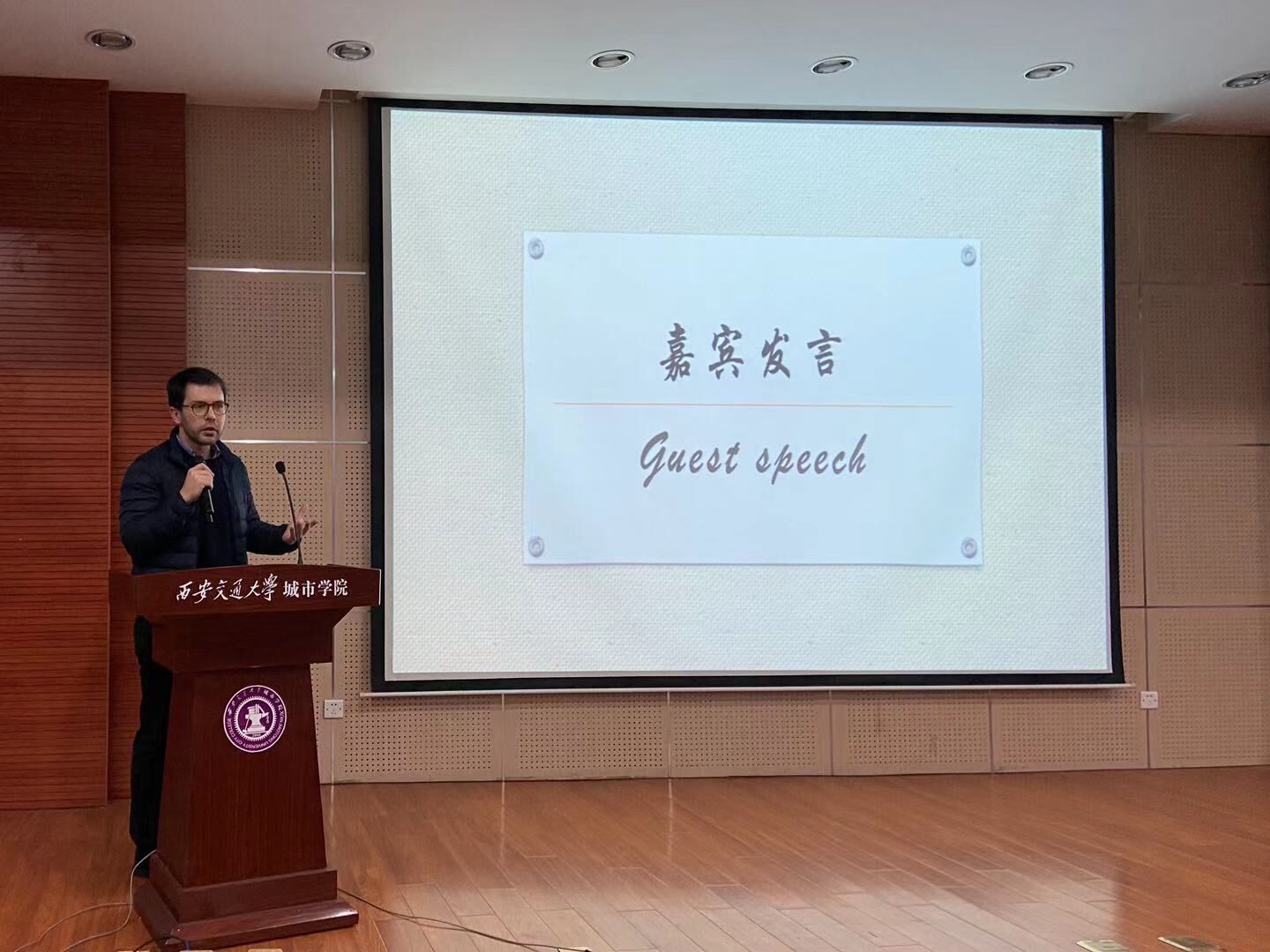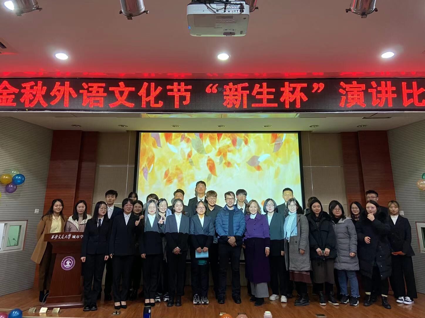 落叶已落,但金秋仍然热情,12月1日晚,西安交大城市学院金秋外语文化节之演讲大赛决赛在教学楼F100圆满落下帷幕。本次活动由外语系王宇晗、黄雨晨主持,评委团由薛瑞、艾庆华、王融雪、刘娜、姚丹丹以及外教Alessio组成。同时大学英语教研组的老师们也前来观看了同学们的比赛。