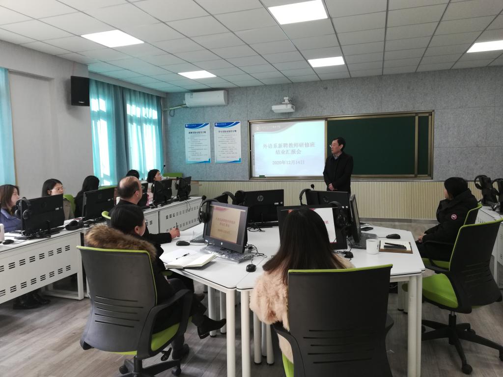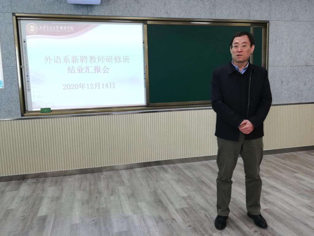 12月14日、21日下午,西安交大城市学院外语系在教学楼B315教室召开了新聘教师研修班结业汇报会。汇报会由外语系主任郭继荣教授主持,外语系领导和全体新聘教师参加了会议。