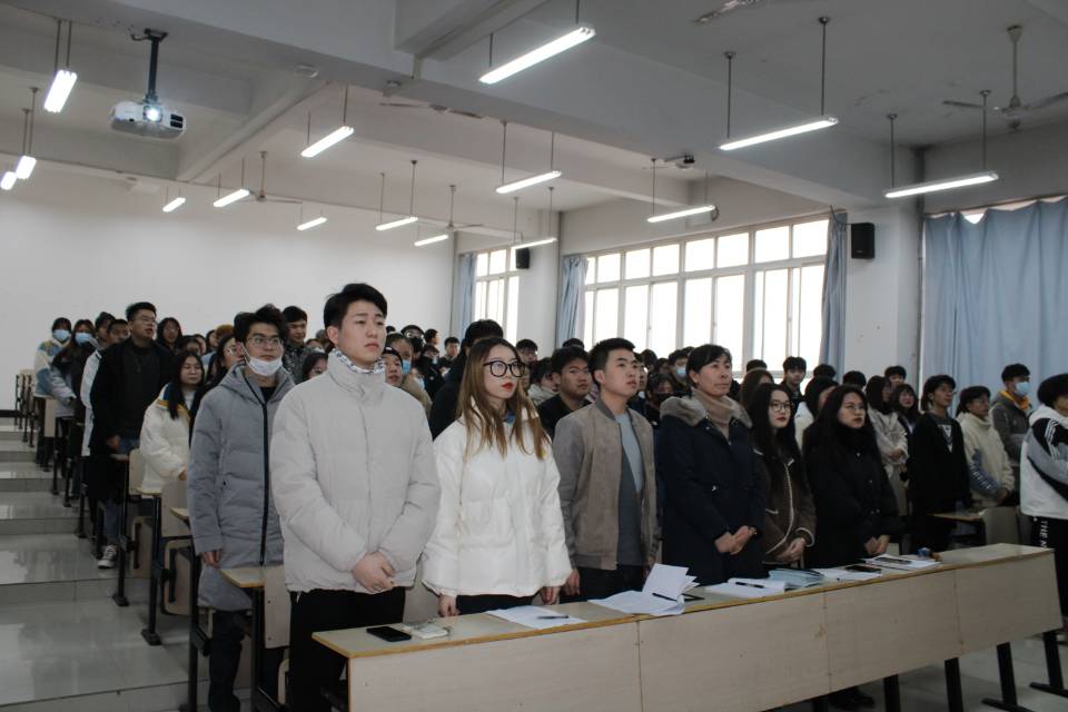 大会伊始,全体师生共唱团歌,目光坚定、精神抖擞,嘹亮的歌声展现着新时代青年的责任与担当。主席团四位学生干部依次汇报本学期各自负责的工作成绩。团学部门干部代表罗荣泽发言,他表示本学期通过团学活动自己得到了充分锻炼。刘健老师进行总结发言中感谢团学成员的辛勤工作,肯定了本学期团学工作取得的成绩,同时要求每名团学组织成员反思各自工作中的不足,进一步提升各项工作能力。临近期末,也希望大家认真复习迎接期末考试。