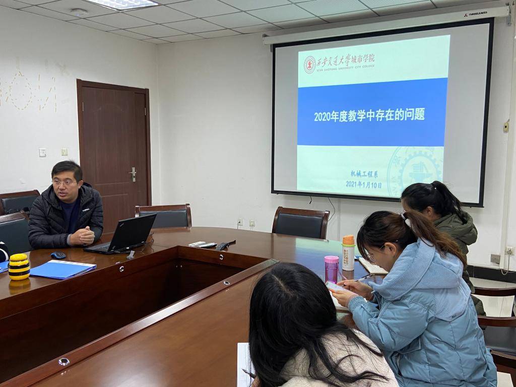 首先,系主任助理王国平对机械系2020年度教学中存在的问题进行总结汇报,以教学研究、日常教学以及实践教学三方面为切入点,对目前教学现状和存在问题进行梳理分析,据此提出相对应的解决措施和建议。