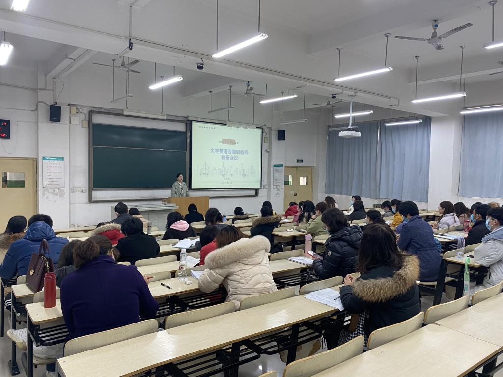 2月25日下午,yl7703永利官网外语系在教学楼B300教室召开了大学英语教研会议,系主任助理兼大英教研室主任巫奕君、教研室副主任苏晓华、各课程组组长以及全体专兼职老师共计40余人参加了此次会议。