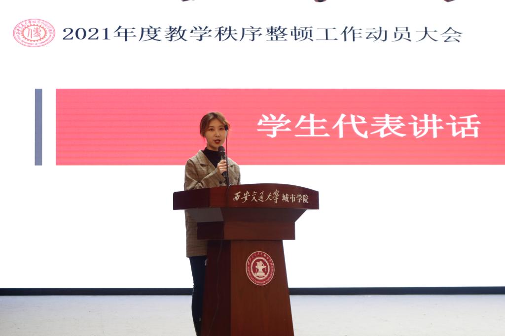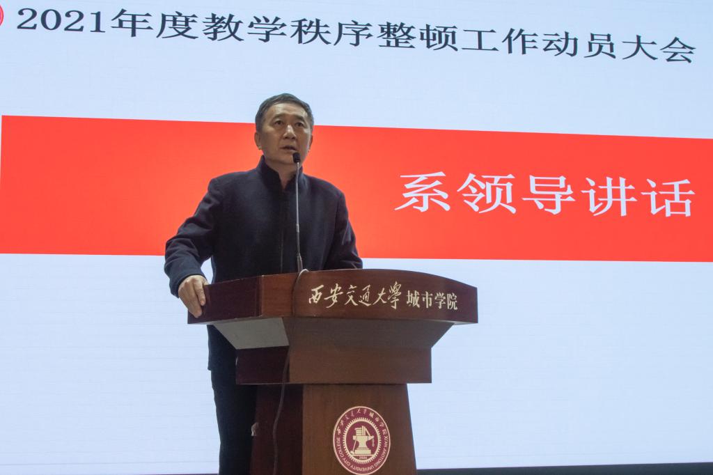西安交大城市学院传播系于3月1日中午在大学生活动中心召开了2021年度教学秩序整顿工作动员大会,传播系常务副主任刘强、办公室主任孙晓斌、学生工作负责人杨耀聪、团工委书记陈欣以及各专业任课教师出席本次会议,大一至大三年级学生参加本次大会。