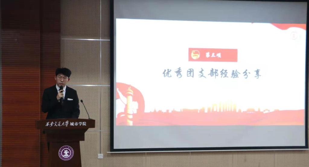 伴随着中国共产主义青年团团歌的奏响,本次启动仪式拉开了序幕。首先,组织部部长丁松浩为在场成员介绍本次团日活动整体情况并且宣读团日活动评比推优细则。紧接着,来自19级优秀团支书代表刘浩楠从“学习状况、组织建设、强化班集体建设”三个方面为大家分享了团日活动的经验。随后,团工委书记崔佳楠对刚刚闭幕的全国两会基本内容进行了讲解,要求此次团日活动要联系时代精神,紧扣主题。