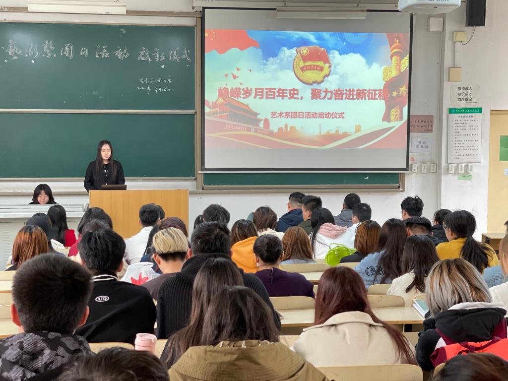 为迎接中国共产党成立一百周年,高举中国特色社会主义伟大旗帜,激发大学生昂扬的斗志。yl7703永利官网艺术系于3月16日中午在D100举办了“峥嵘岁月百年史,聚力奋进新征程”为主题的团日活动启动开启仪式。艺术系学生工作负责人李成、团工委书记杨梦圆,辅导员张小欢、冯凯闯出席了本次活动,本次活动由李成老师主讲,张悦同学主持。