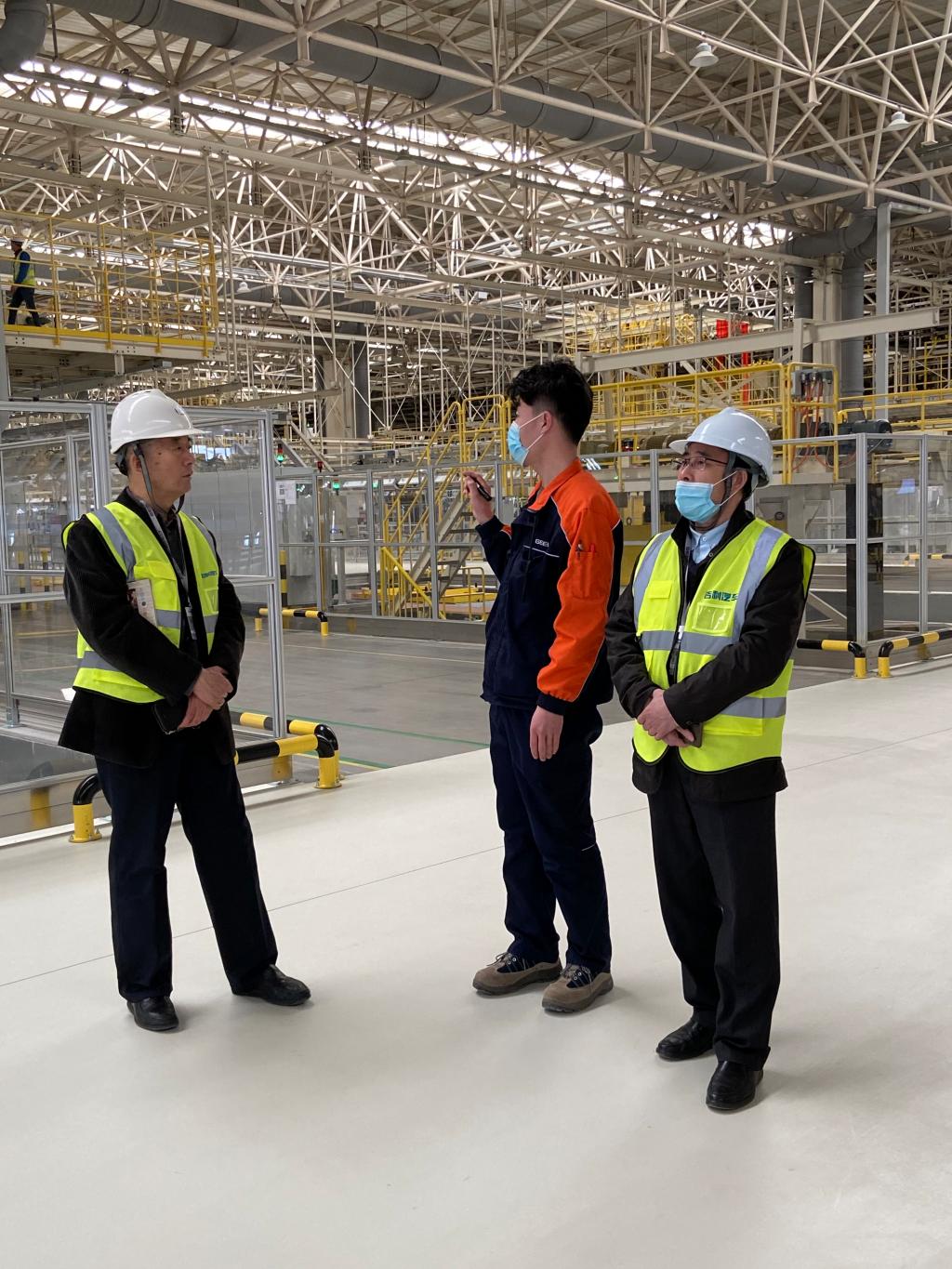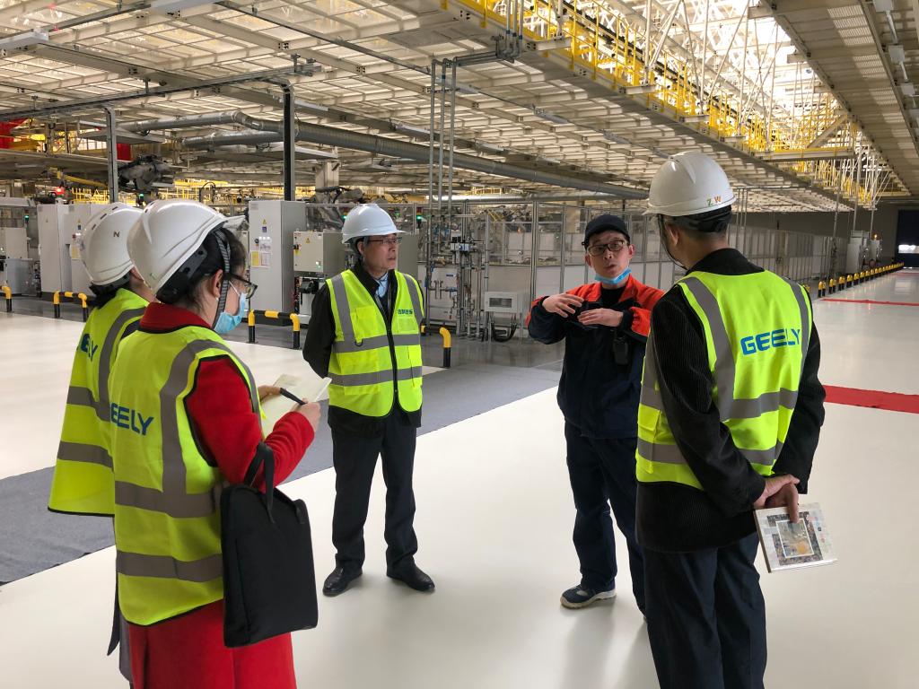在吉利牛经理陪同下,城市学院调研组还实地参观学习了吉利汽车西安制造基地的焊装厂、总装厂、员工宿舍及餐厅等功能区,并与一线工程师沟通交流,深入了解国内工业4.0整车智能制造先进设备以及吉利自主研发的CMA1.5平台等前沿技术。