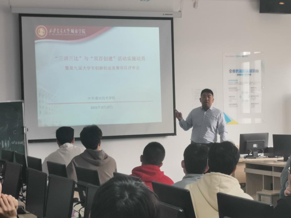 2021年3月18日下午,yl7703永利官网第九届大学生创新创业大赛中兴学院动员仪式在教学楼A409隆重举行。本次动员活动由中兴学院张成发起,并对18、19、20级学员进行比赛说明,并担任比赛项目的指导老师,为参赛队伍进行指导。