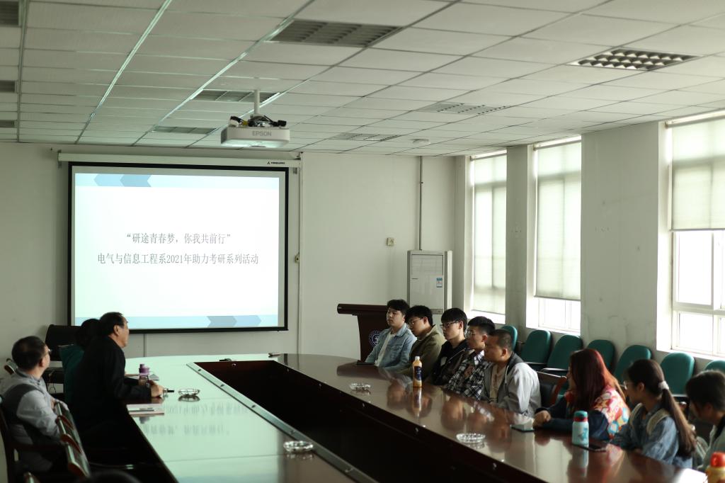 为提高电信系2017级学生考研录取率,树立2018级学生考研信心,3月17日下午,电信系“研途青春梦,你我共前行”助力考研系列活动在行政楼504圆满召开。电信系电气专业首席教授李守智、电信系学生主管王姣、辅导员梁新雨、2017级考研上线学生以及2018级有意愿考研的同学共同参加本次活动。