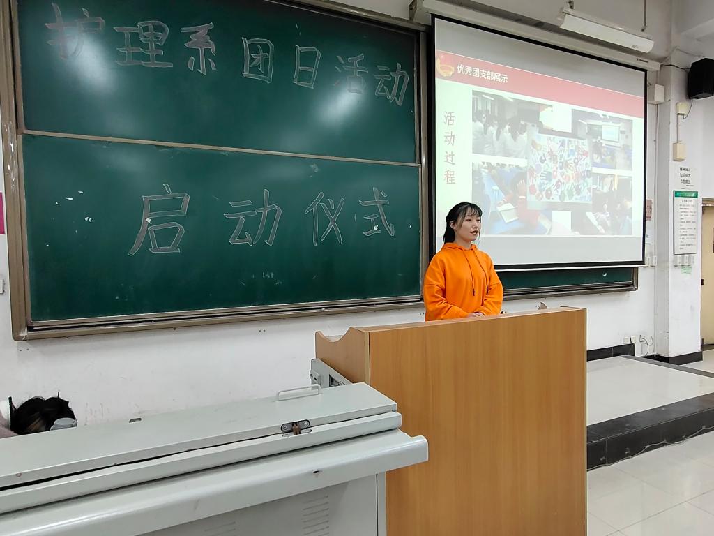 活动伊始,全体参会人员起立奏唱共青团团歌。首先由张妙寒对本次团日活动启动仪式致辞。她围绕本次活动的背景对本次团日活动的主题及重要性进行讲解,同时她指出各团支部应结合专业特色开展多元化的团日活动,并注重多角度宣传,扩大活动影响,深化活动成效。随后,组织部部长张梦煜从“评选对象、评选主题、评选过程、评选要求、表彰”五个方面梳理了各支部参与最佳团日活动评比的关键时间点和注意事项,并对奖项设置进行了详细说明;护理191班团支书李雅楠就举办团日活动的经验和上次团日活动的内容进行分享;康复191班团支书王家琳就团日活动如何与专业特色相结合,开展创新内容两方面进行经验分享。