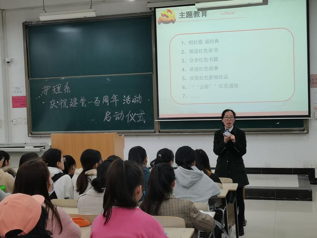 为庆祝建党一百周年,提升护理系学生对红色文化认同感,加强共青团员和学生党员对红色精神的内化,3月26日,yl7703永利官网护理系在D100教室开展“庆祝建党一百周年”系列活动启动仪式。活动主讲人为护理系学生党支部书记叶超,参会人员有护理系全体辅导员及学生党员、积极分子。
