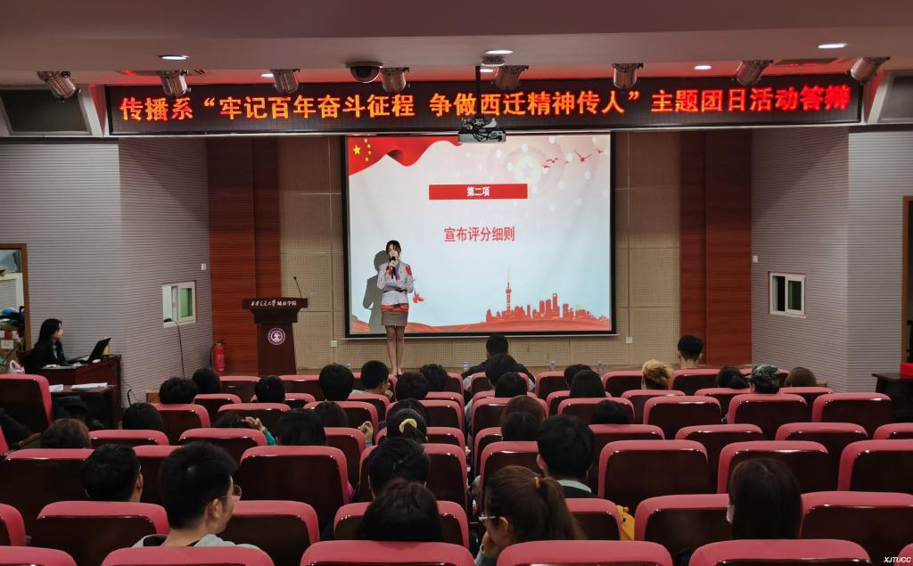 为激发青年团员以昂扬的姿态迎接建党100周年,深入贯彻落实习近平总书记关于青年工作的重要思想,传播系于4月8日晚在F100举行了“牢记百年奋斗征程,争做西迁精神传人”主题团日活动答辩。出席本次答辩会的老师有传播系学生工作负责人杨耀聪,团工委书记陈欣以及辅导员任瑾,参加本次答辩的有传播系2019级和2020级各团支部以及团学会全体成员。