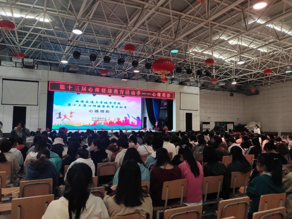 根据第十三届心理健康教育活动季暨陕西高校第六届“阳光护航”心理育人宣传季活动的安排,4月9日,西安交大城市学院学生服务中心在大学生活动中心组织了心理观影活动,本次活动由心理协会承办,300多名学生报名观看了电影。