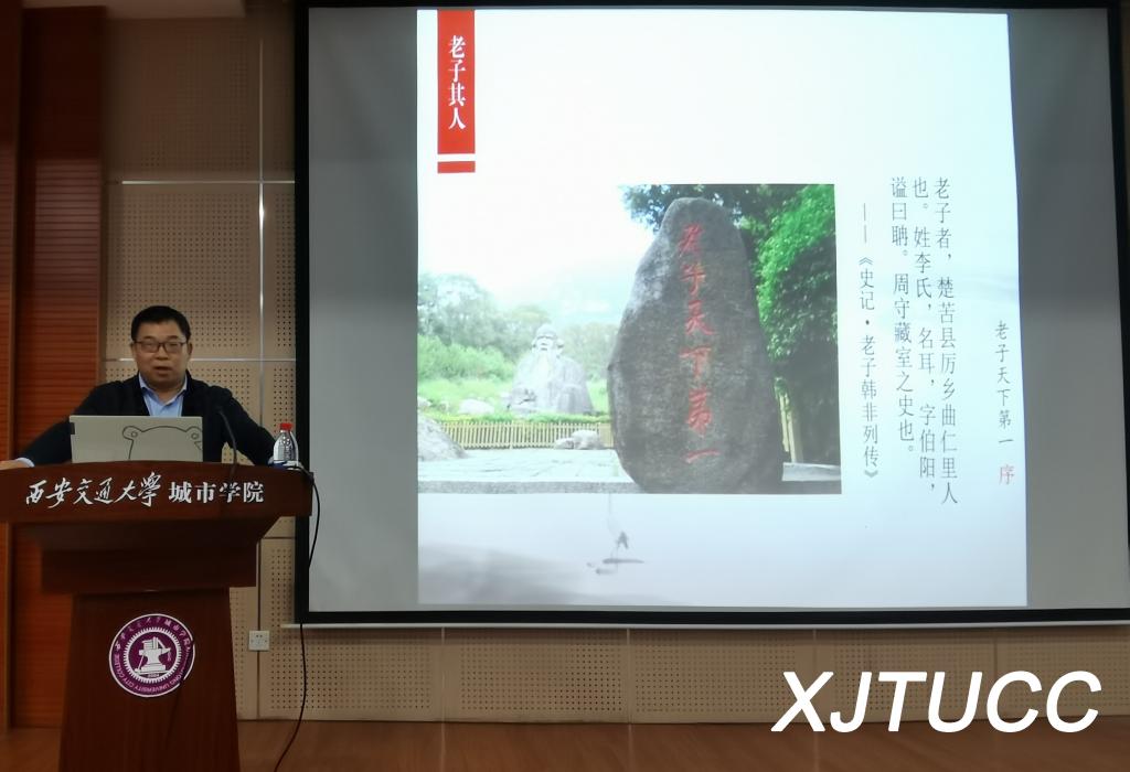 讲座伊始,余先生从“老子天下第一”这块石碑讲起,追溯到老子的出身及一生伟大事迹,用众多历史人物对于老子的评价,使得在场听众知晓老子是中国哲学史的鼻祖。随后,余先生将《道德经》以“道”与“德”两部分进行分别阐述。根据其内涵总结出,道,是自然的规律,处处影响着我们的生活;德,不是传统意义的道德,而是人的行事原则。由此告诫在场听众,在日常生活中应当按照道德行事,依道而行。最后,余先生通过“A4纸折64次会有多高”这个头脑风暴小问题展开激烈讨论,进而向在场听众点明了持续积累的重要性。